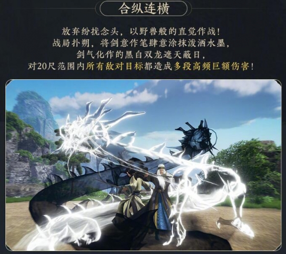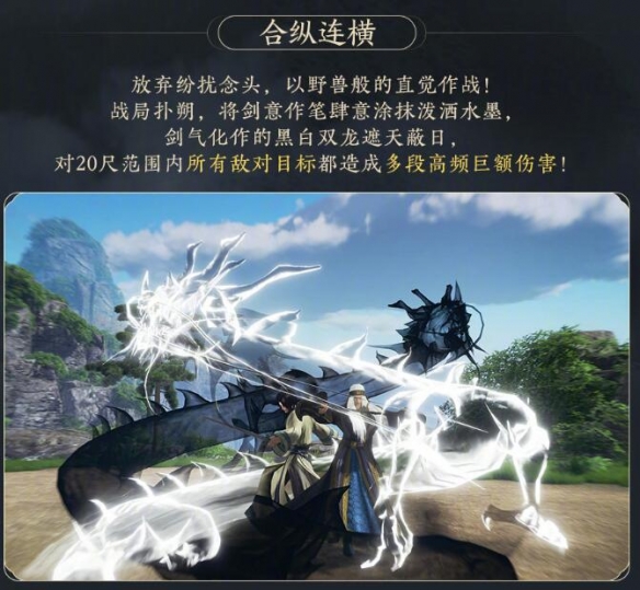 持剑蓄势释放强大内力,对自身周围造成大额范围伤害。黑龙与卫庄一同冲向目标,再次造成巨额伤害。
