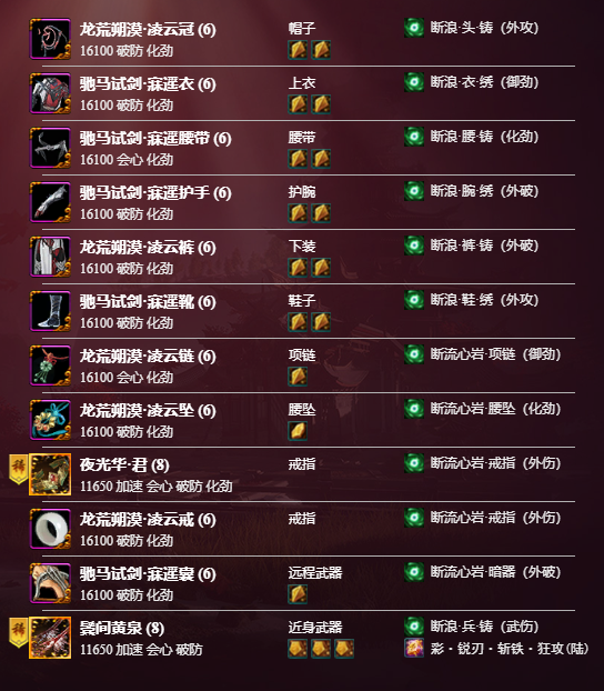 本套装备的亮点是可以达到72的破防和27的会心,在实战中机动性高,伤害能打的更高并且适合平民玩家。