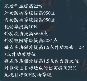 外功门派主要提升的就是身法、会心,从属性图中可以看到,凌雪阁提高身法会加攻击、破防,那后续装备主要给它叠身法来加破防就可以了,大概叠到破防70左右,会心30就足够,大概是这么个情况,需要消化不理解的小伙伴也不用着急,最后会有作业抄。