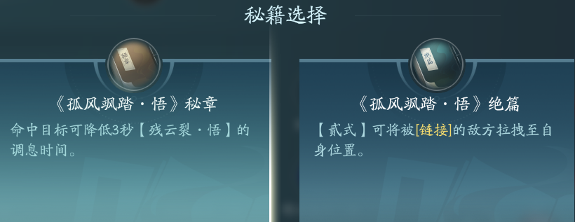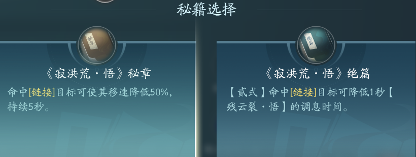 普攻选择寂洪荒+第二本秘籍(二段命中链接目标减少残云裂cd1s),其余全部选择第一本秘籍(加伤/减少左右手链技能cd)