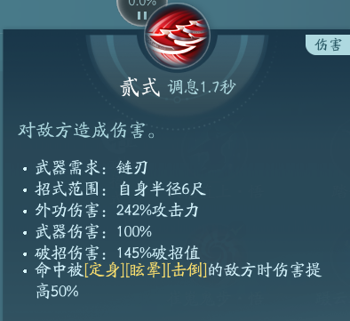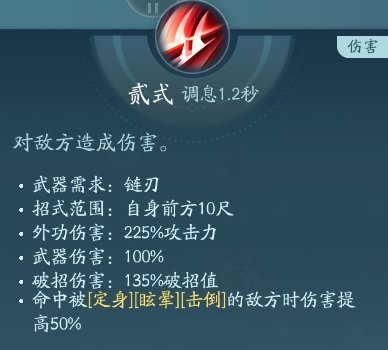 这个技能为2段普攻技能,秘籍一般PVP点绝篇的比较多,因为有眩晕所以PVE点秘章