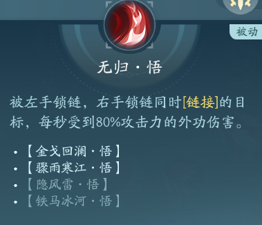 PVE奇穴推荐:索命·悟→劫尘·悟→无归·悟→飞刃回转·悟