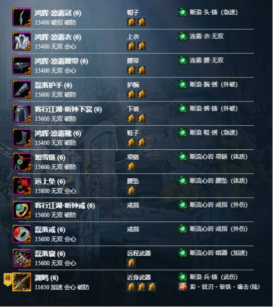 每个装备栏还需要熔嵌高级五行石在熔嵌栏中,有条件的侠士可以熔7、8级的五行石,平民玩家熔嵌6、7级的石头也够了,每个可熔嵌的熔嵌栏熔入石头后都会有一定的加成。
