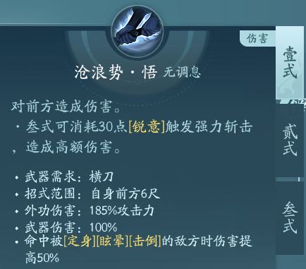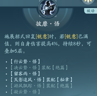 PVE奇穴推荐:斩涛·悟→披靡·悟→倒海·悟→孤锋破浪·悟