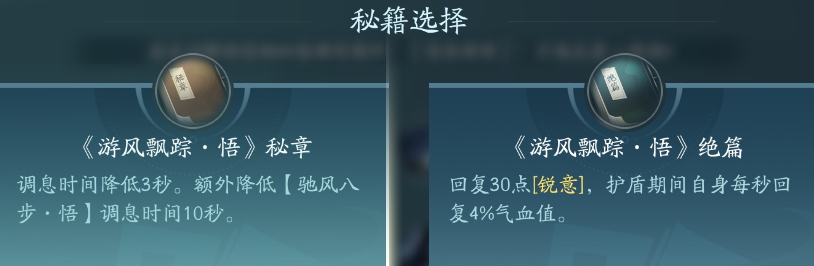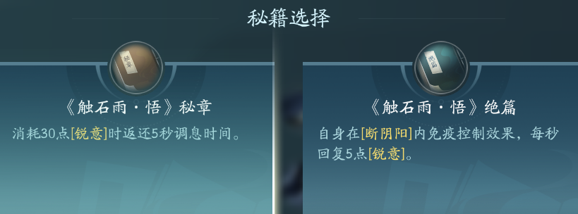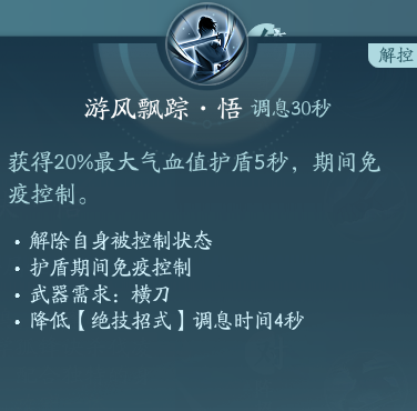 除门派轻功外的解控,可以保命免控。纯PVP技能菜刀队可以点绝篇,带了奶可以点秘章续免控。