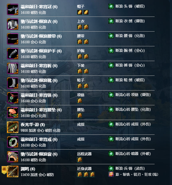 小橙武刀宗配装,有小橙武和橙戒的加速所以其他附魔不用打加速以免加速溢出,竞技场4件套爆发更强节奏也会很快,会心堆到35左右伤害就是可以的。