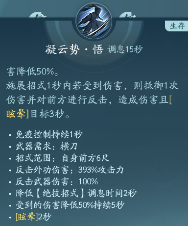 移动端刀宗唯一的减伤技能,建议PVP选此技能,PVE一定要选可以点秘章。