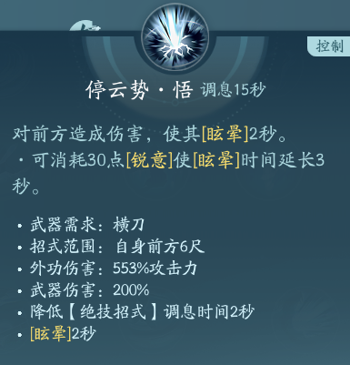 移动端刀宗的门派轻功并且可以解控,技能有两段,需要好好利用看准时机释放。