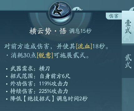 虽然是普攻,但是是范围群伤,伤害很猛。PVP点秘章回血,PVE点绝篇,尽量在满锐意的时候打出行云势叁,又有增伤,又能减少技能cd。