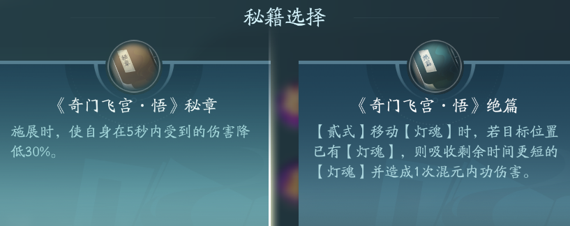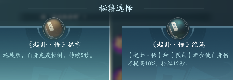 PVE无脑选择绝篇即可,但是不建议PVE带起卦技能,PVP带秘章免控。