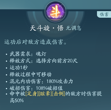 天斗旋为非固定时间跳伤害的条状弹道群攻技能。秘籍PVP点秘章打控制,PVE点绝篇增伤。