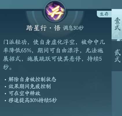 门派轻功,衍天的解控技能。