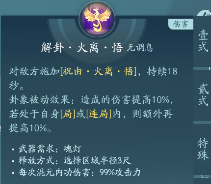 以上就是移动端衍天的所有技能和秘籍,衍天在移动端所有的技能均为群攻,卦象不再随机,变卦也不再随机,上手的难度会降低很多。