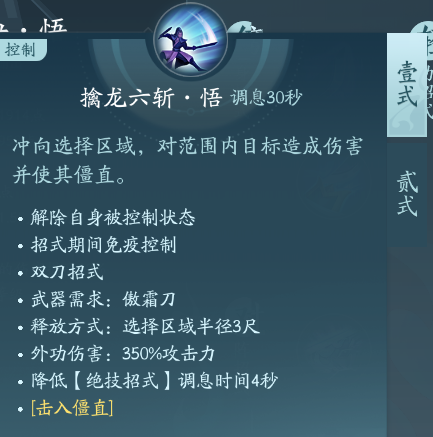 移动端霸刀的门派轻功技能,简称散,可以解控也可以抵挡三次伤害并免控。