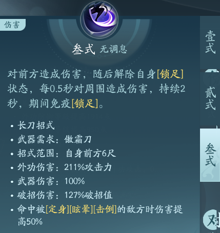 三段技能都是范围伤害,叁式还会有个免锁的buff。PVP点绝篇,PVE点秘章。