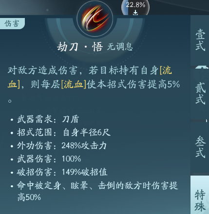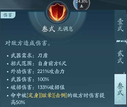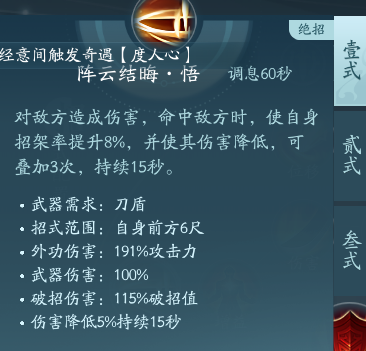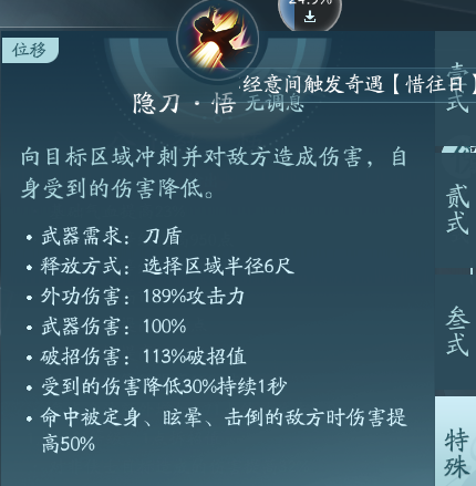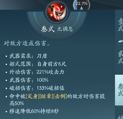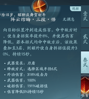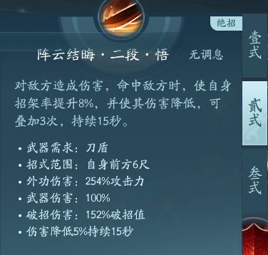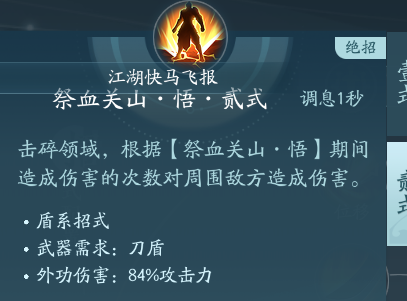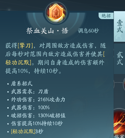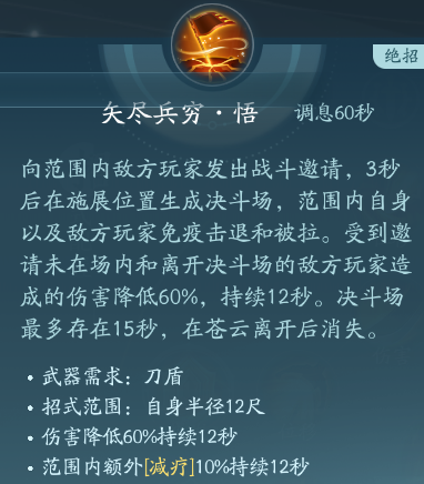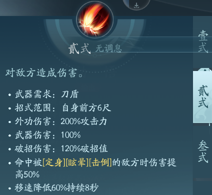 是个控制伤害技能,可以封轻功控制击倒对方。PVP点绝篇,PVE点秘章。