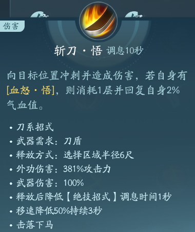 小段冲刺后造成伤害,如果对手是天策可以将其斩下马去。PVP点绝篇,PVE点秘章。