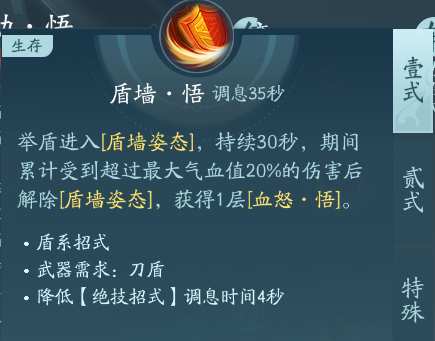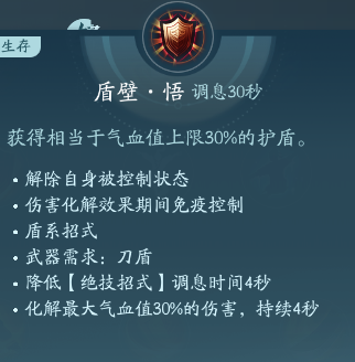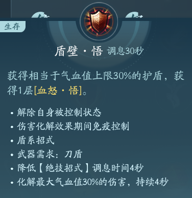 是一个防御生存技能,立起盾墙吸收伤害。PVP可以点绝篇。PVE点秘章。