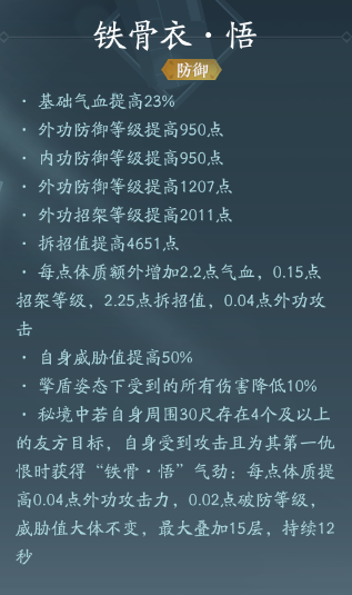 以上是铁骨衣的新增技能和秘籍,其余技能和分山劲的技能一样,只是在秘籍方面会有不同。