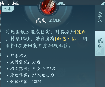 是一个增益技能,使用后能给自己增仇。PVP点奇卷,典册单刷T必点。