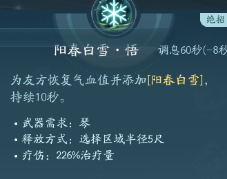 相知其余技能秘籍和莫问是一样的,相知的治疗能力一般以护盾的形式,并且能给友方增益,在对局中可以点大盾保护队友和稳定血线。