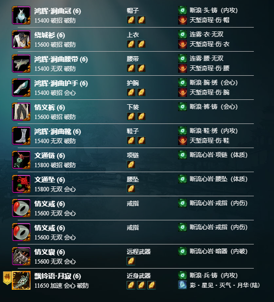 副本中除了小附魔还会掉落大附魔,莫问作为内功攻击门派,可以使用的大附魔为“伤”。