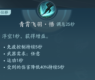 移动端莫问的门派轻功,在期间浮空并免控5s,并且能减伤40%