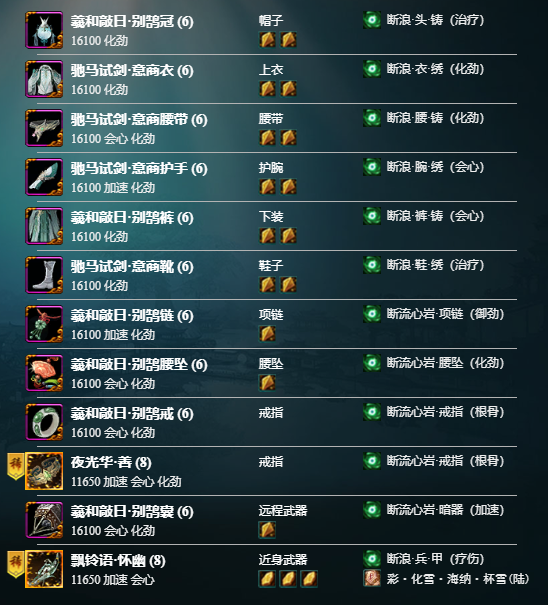 其余为25人英雄冷龙峰掉落散件装备。