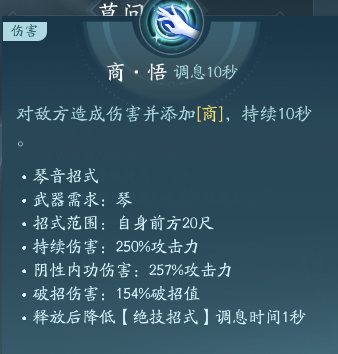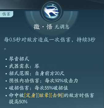 以上就是莫问所有的技能和秘籍,莫问攻击以琴为主,并且需要有影子辅助增伤,PVP需要比较灵活,机动性高一点的技能和控制,PVE不需要考虑那么高,输出伤害就可以了。