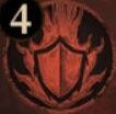 4、守护坚盾(威能技):停止攻击,对前方释放战吼,有100%概率嘲讽范围内的敌方目标,持续5.0秒,并造成[+600%防御]火焰伤害。对自身施加伤害减免状态,持续5.0秒,并施加受击回复状态,持续5.0秒。