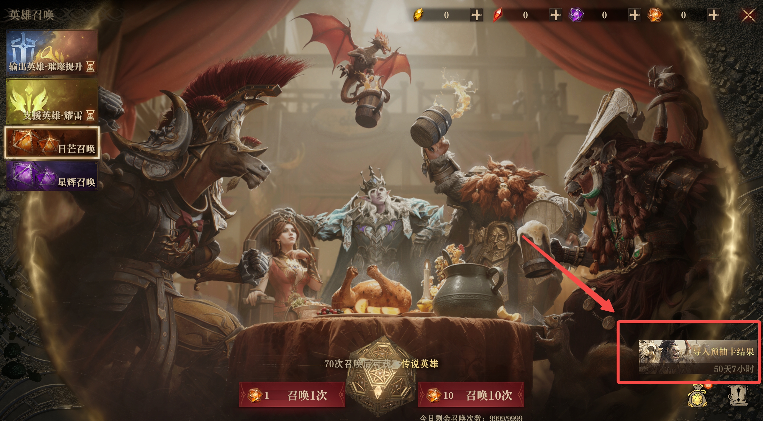 测试期内,登录游戏进入【召唤】界面,点击【导入预抽卡结果】完成结果同步后,【日芒召唤】接下来一百抽的结果将和预言召唤抽卡一致。