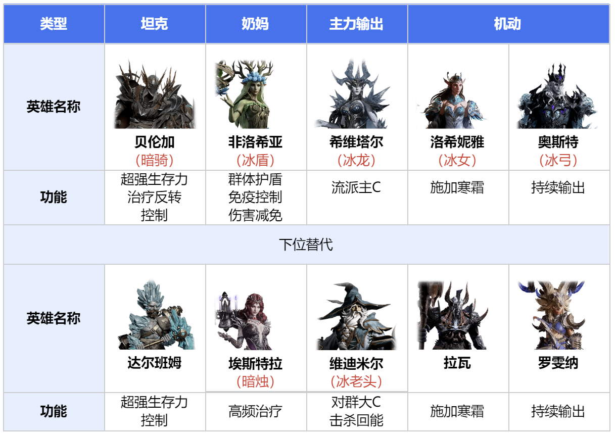 前期配队可按以下公式构建: