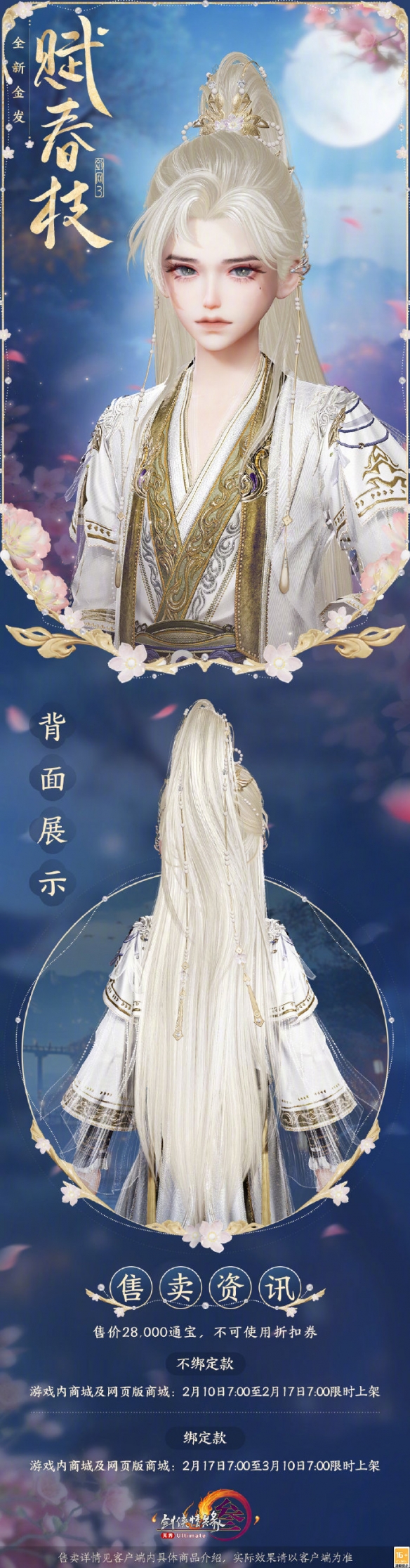 全新金发赋春枝将在2月10日上线,很多玩家想知道赋春枝外观长什么样,本次的金发主要以金色和珍珠等配饰做点缀,分为不绑定款和绑定款两种,接下来就由小编给大家带来了详细的《剑网3》金发赋春枝外观一览,希望这篇文章可以帮到大家!