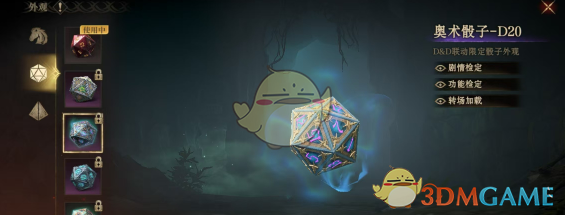 骰子外观分为两种分类,分别是d20和d4,骰子皮肤可以改变在冒险中使用骰子的外观。