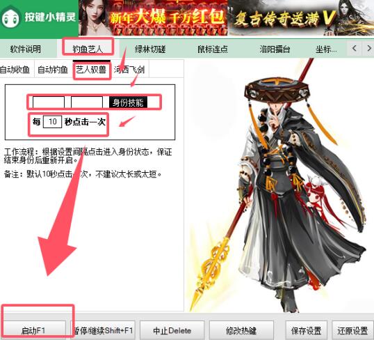 2、然后去下载一个艺人挂机工具,打开工具选择【钓鱼艺人-艺人御兽】;