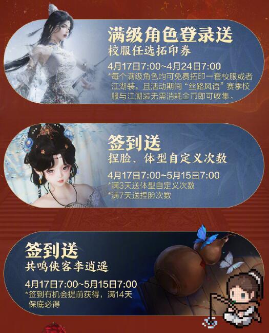 满级角色登录送校服任选拓印券