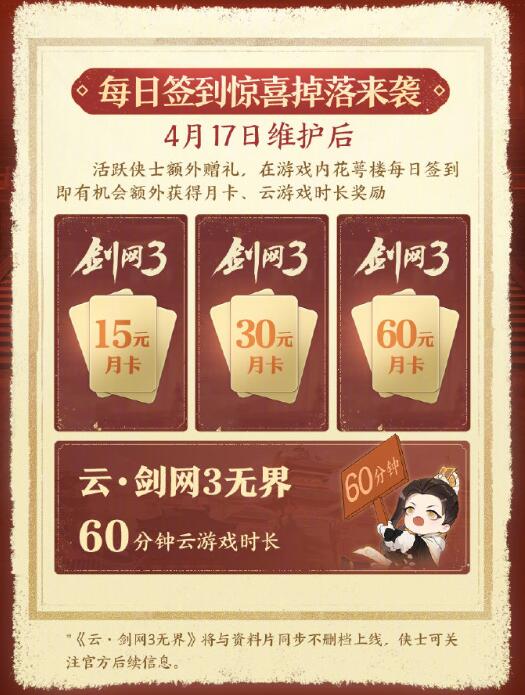 每日签到概率获得月卡、云游戏时长