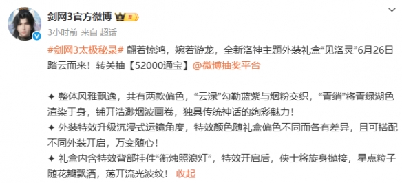 1、【见洛灵】为全新洛神主题外装礼盒,将在6月26日上线;