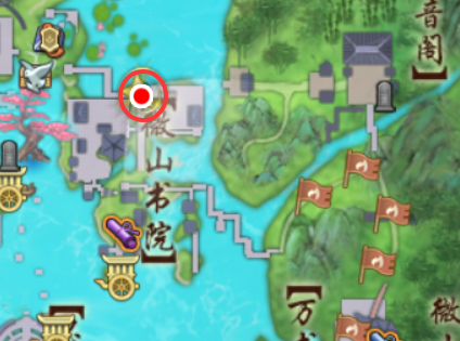 3、来到万花·乱世【浮溪渡】对话【薛荣戎】,互动书堆后继续对2次【薛荣戎】;