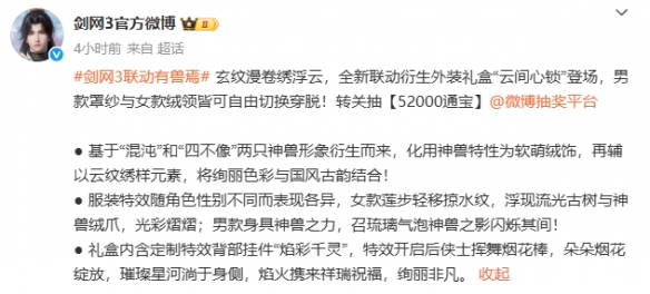 云间心锁为剑网3何有兽焉的联动外观,那么该外观长什么样呢,【云间心锁】时装是按照“混沌”和“四不像”两只神兽形象衍生而来,时装礼盒还有背部挂件焰彩千灵和定制白发,接下来就由小编给大家带来了详细的《剑网3》有兽焉联动时装云间心锁外观一览!