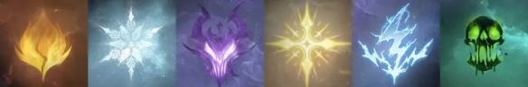 一、英雄按元素类型可分为:火焰、冷冻、黯蚀、光耀、闪电、毒素六类。