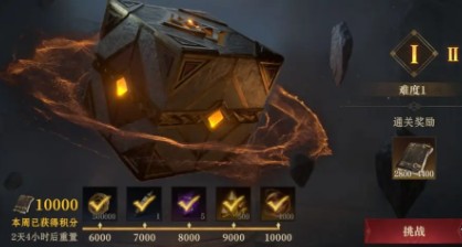 3、可配置多名英雄在挑战中交替登场(数量随难度增加),可出战英雄全部阵亡或选择“放弃本轮”后,将根据当前探索进度结算部分周进度积分。