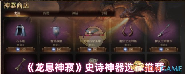 《龙息神寂》史诗神器选择推荐: