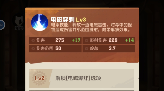 3、电磁穿刺:可以释放一道电磁雷击麻痹周围的怪物。