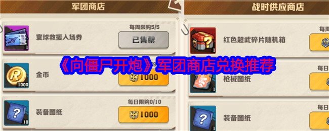 以上就是小编整理带来的《向僵尸开炮》军团商店兑换推荐,更多精彩内容,请点击关注手游网!