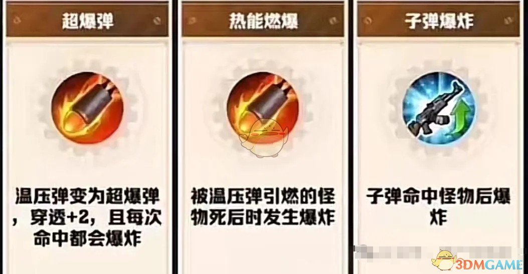 3、热能焚身它相对超爆弹来说各有各的优势吧,超爆弹加穿透是很强势,但热能焚身在100关之后作战效果尤为明显,况且温压弹本身就自导燃烧效果,搭配上:温压弹附加3秒燃烧,有传送或者风百就更有用,一来依靠传送可以控制怪物,二来风百可以打伤害,还是非常占优势的!