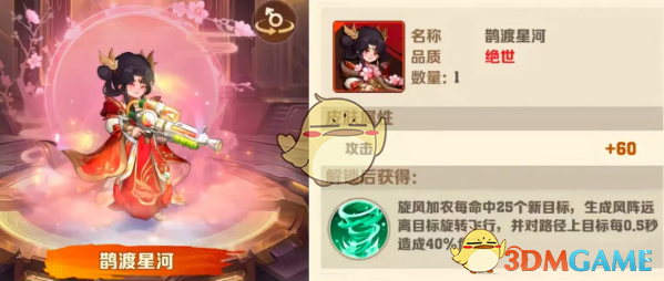命中25新目标形成风阵,触发风百效果,伤害不减且范围更广,是极少数能触发百分比效果的强大皮肤。