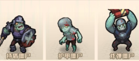小怪:持盾僵尸、护甲僵尸、炸弹僵尸