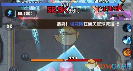 6、如果没有将其冻结,可通过温压弹击退和射线来拖延时间,等待18级升出干冰弹冻结即可。