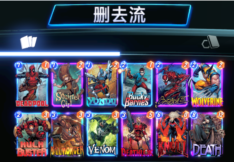首先为大家推荐的,毫无疑问就是两套以删去卡牌为核心,从而不断将这位共生体之神喂饱的卡组,这两套卡组的核心思路都是由纳尔的两位共生体小弟和诸多的删去组件通过不断地删去卡牌,从而为纳尔增加战力以及为死亡女神减费,让你最后一回合可以同时打出纳尔+死亡女神,以这套极高的爆发来终结比赛。